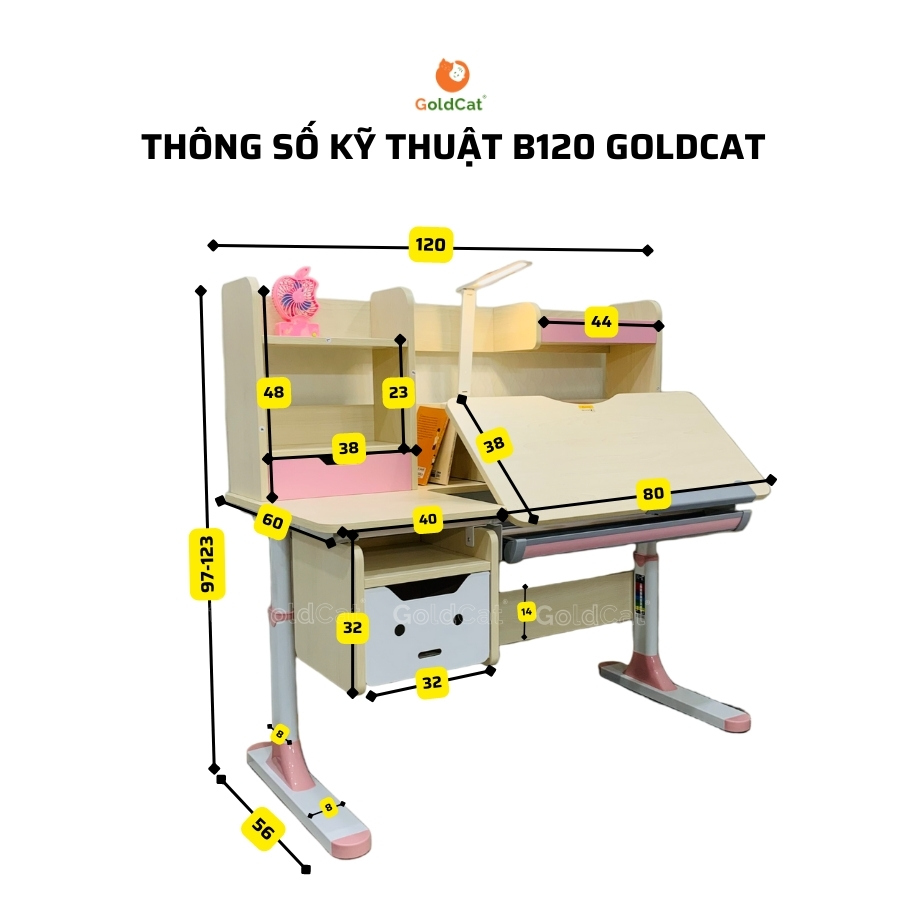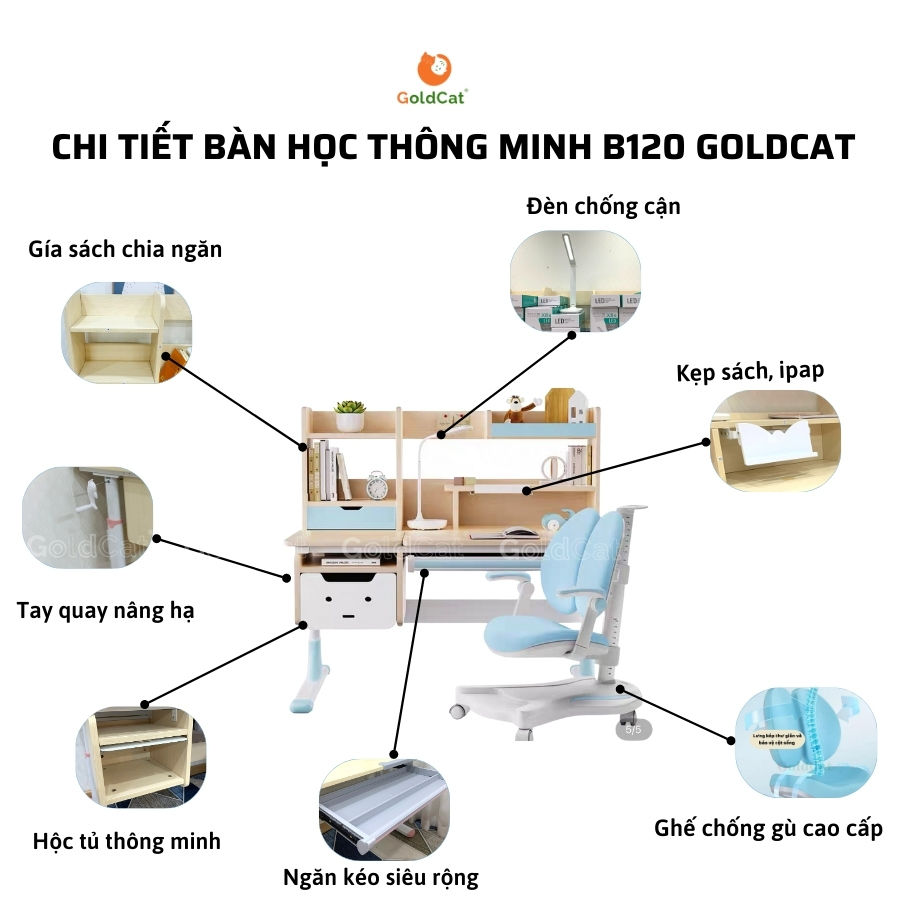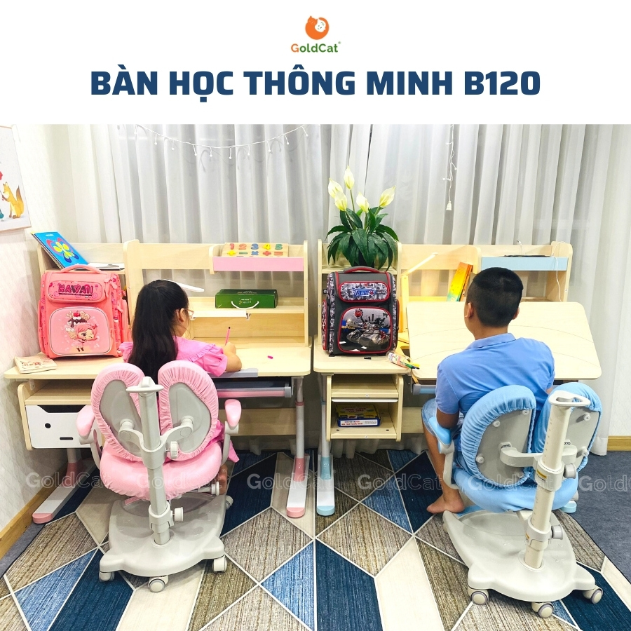 GoldCat Việt Nam là một trong những thương hiệu hàng đầu Việt Nam cung cấp các mẫu bàn ghế học sinh cho trẻ từ mầm non, tiểu học tới trung học, sinh viên. Không chỉ được đánh giá cao về mẫu mã sản phẩm mà GoldCat còn có nhiều phân khúc giá thành để khách hàng lựa chọn. Ở danh mục sản phẩm bàn học cao cấp, Bộ Bàn Công Thái Học B120 là một trong những sản phẩm có doanh số bán khủng nhất hiện nay.