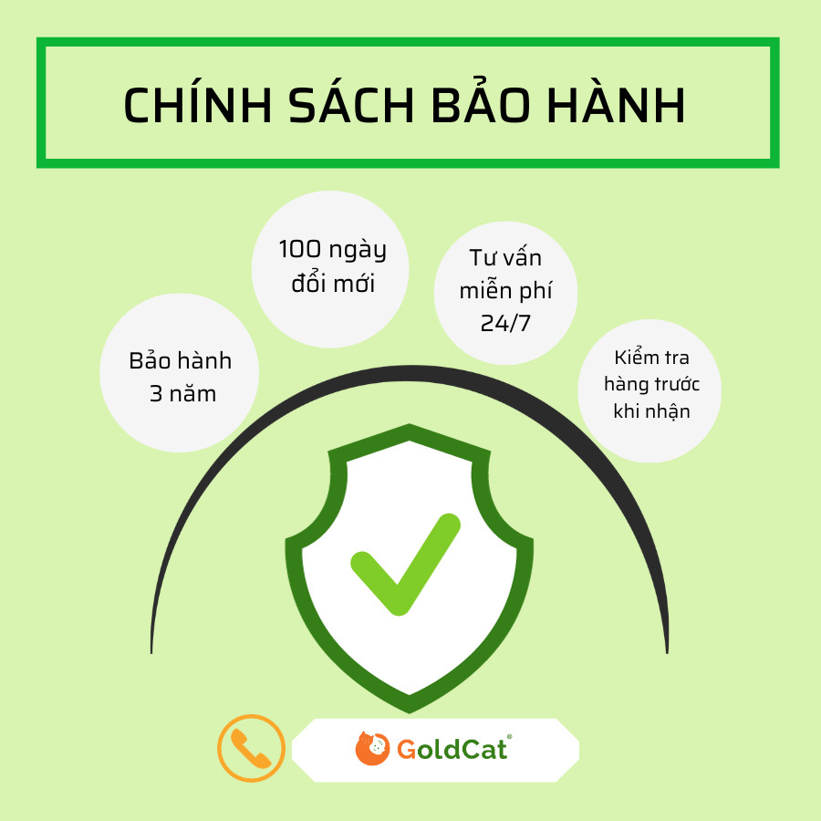 Do đó, Goldcat sẽ hoàn tiền 100% hoặc đổi mới nếu như sản phẩm bị lỗi do Goldcat sản xuất. Cùng với đó, khách hàng được kiểm tra sản phẩm trước khi thanh toán, đảm bảo quyền lợi cũng như sự yên tâm khi mua hàng tại Công ty TNHH GoldCat Việt Nam.