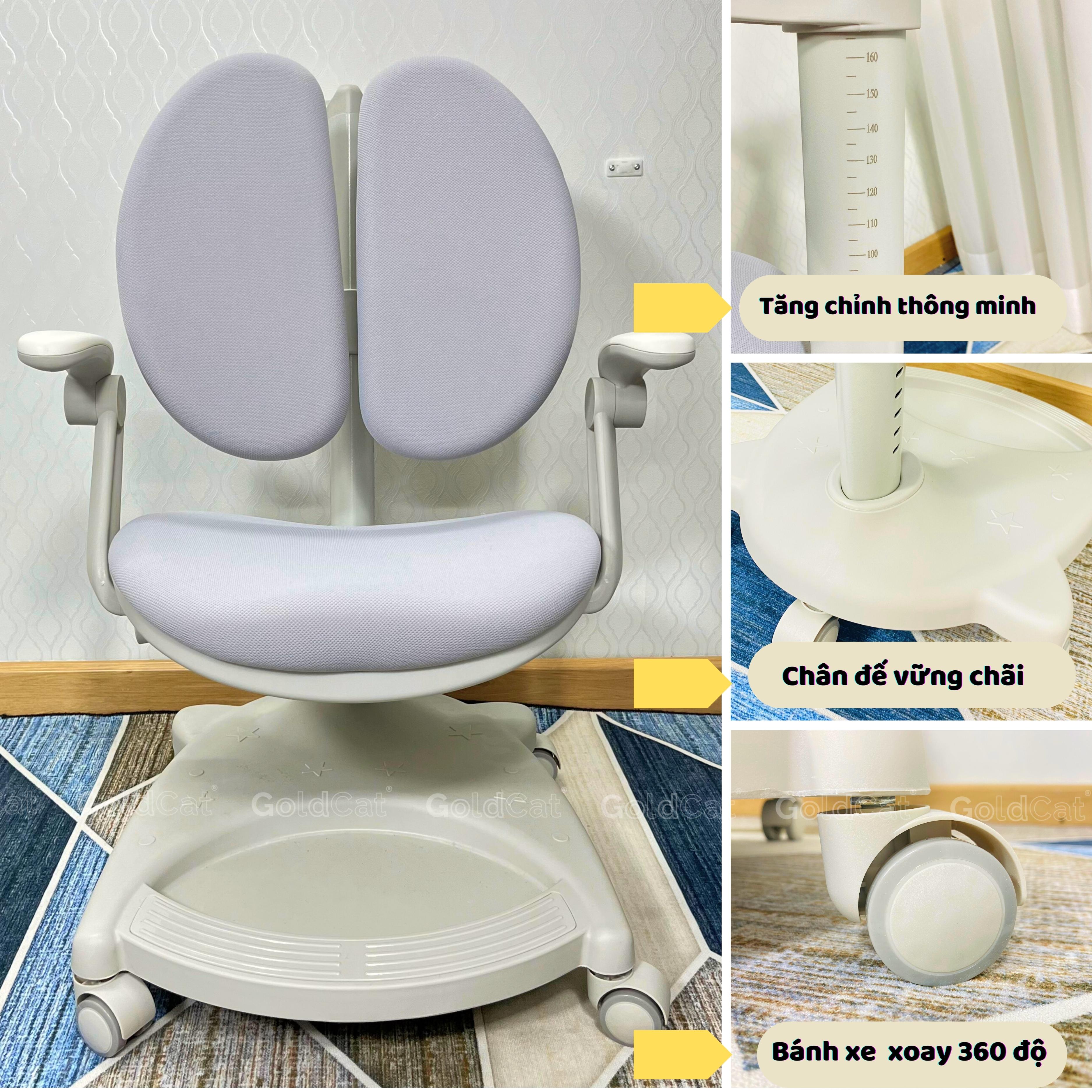GoldCat là thương hiệu chuyên sản xuất và kinh doanh các sản phẩm cho mẹ và bé. Ghế chống gù chống cận cho bé GoldCat là sản phẩm thuộc dòng nhập khẩu nguyên kiện của hãng. Dưới đây là thông tin chi tiết về sản phẩm ghế ngồi học chống gù, chống cận.