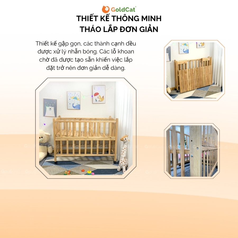 Cũi GoldCat Gỗ Quế sẽ là dòng sản phẩm thế hệ mới dành cho những nàng công chúa, hoàng tử siêu đáng yêu của chúng ta. Căn phòng dường như cũng trở nên sống động và bắt mắt hơn, mang đến tâm trạng vui vẻ, tích cực cho cả Bé và Mẹ.