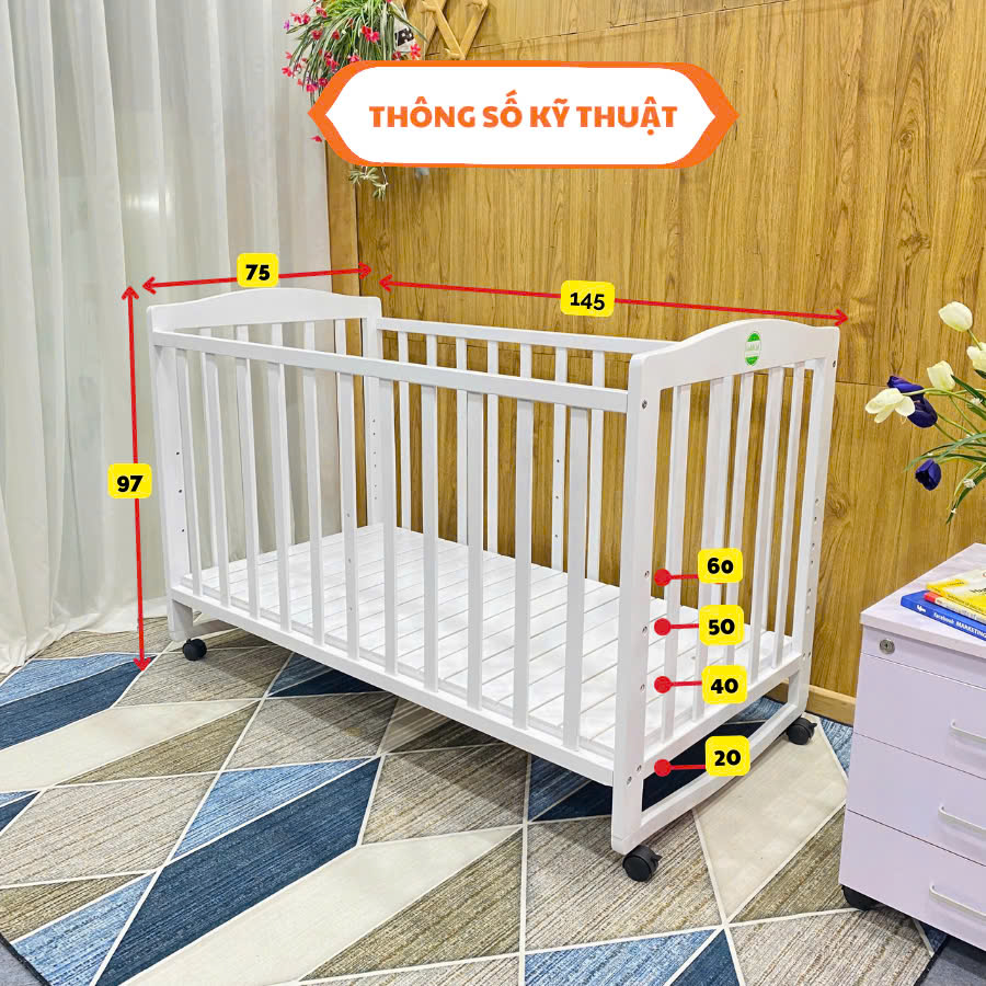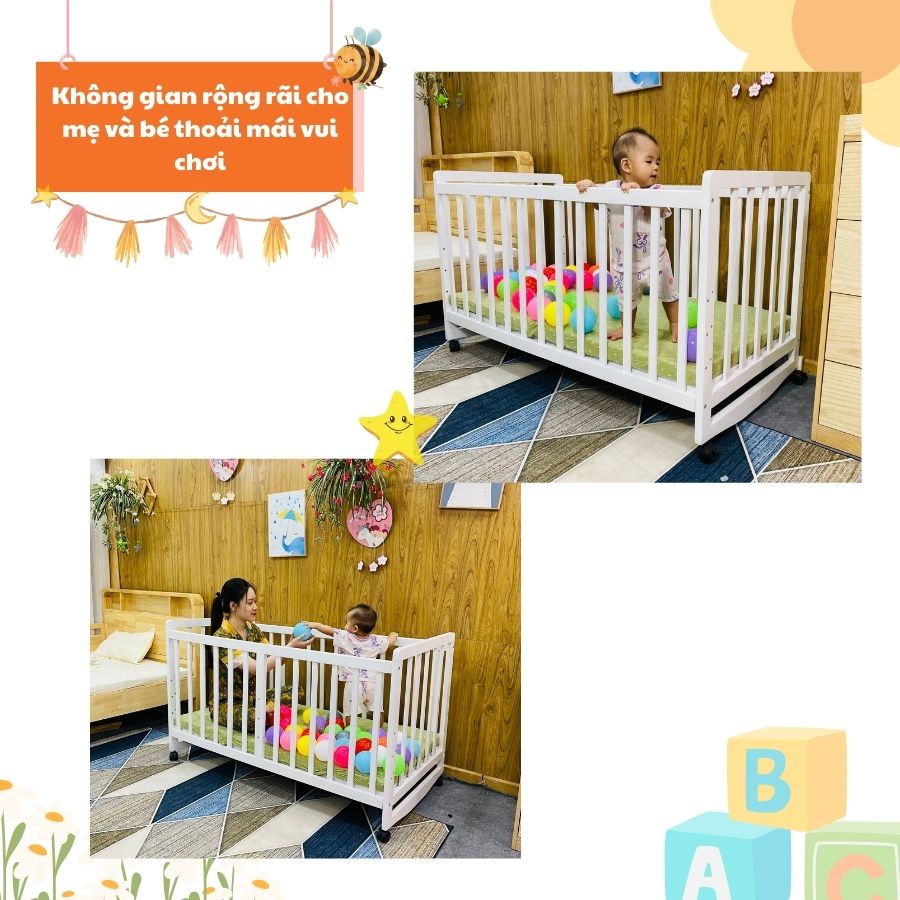 - Cũi giường Gỗ Quế có thể nâng hạ giát linh hoạt để làm giường và cũi cho bé nằm và chơi.