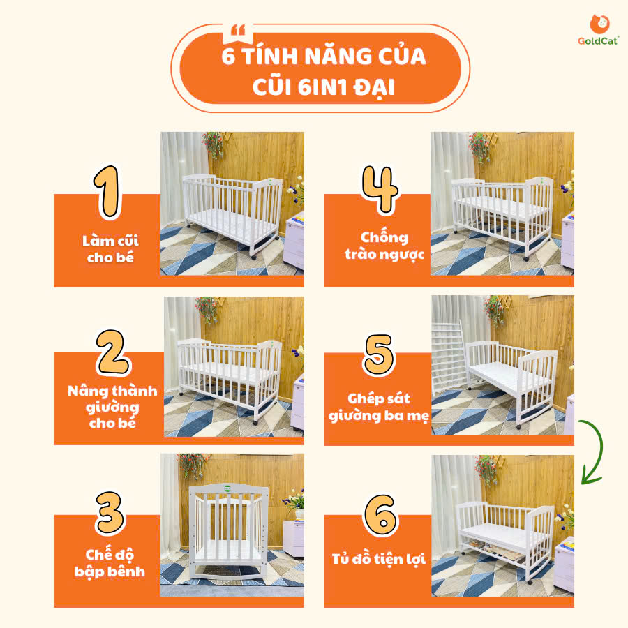 Thông tin chi tiết về Cũi Giường Gỗ Quế Đại GoldCat - Chuyển đổi 6 chế độ