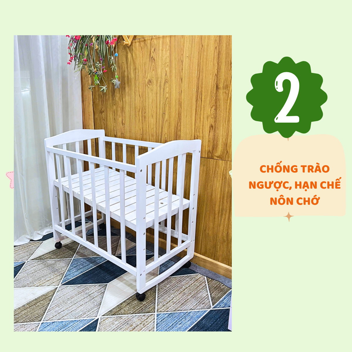 - Nôi Cũi Đa Năng Mini có chức năng chống trào ngược , hạn chế việc bé bị nôn ói trong khi ngủ, hoặc sau khi bú bình.