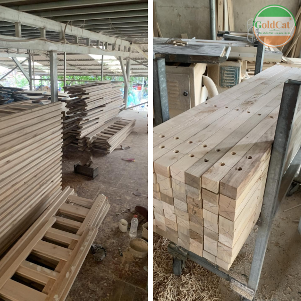 GoldCat sản xuất lựa chọn thường là chất liệu gỗ tự nhiên. Loại gỗ này có đặc trưng là an toàn cho bé , không ngâm tẩm hóa chất. Tuy nhiên nó cũng sẽ có nhược điểm là dễ hình thành những vết nứt nhỏ, gỗ dễ bị rướn.